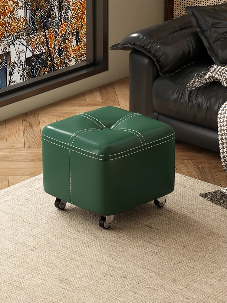 移動式静音万向キャスター付き小さなスツール - 家庭用・赤ちゃん用にも最適!おしゃれなデザインでリビングや玄関の靴を履く時に便利。軽量で簡単に移動でき、使い勝手抜群の四角いスツールです。