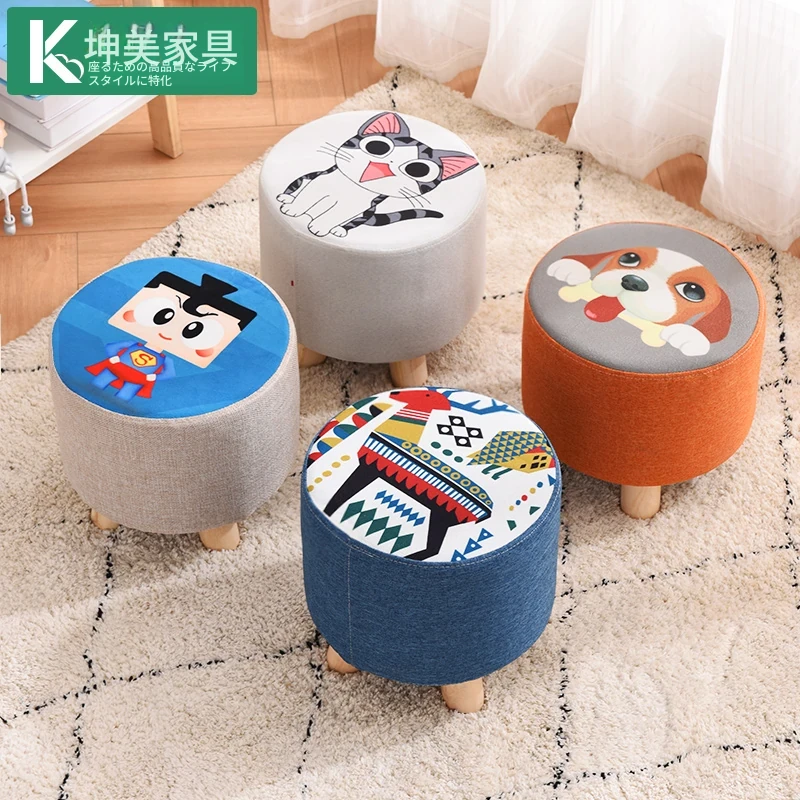 おしゃれな小さなスツール - 家庭用の靴を履き替えるためのベンチとして、リビングや玄関にぴったり!布製のかわいいデザイン、実木の円形スツールで、ネットで話題の子供用板凳としても大活躍!