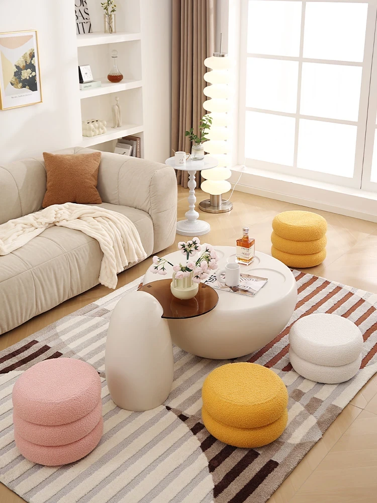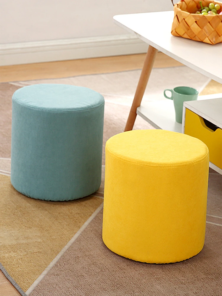 Creative Round Fabric Stool - Home Wooden Shoe Changing Bench, Trendy Low Sofa Table, Perfect for Living Room and Lazy Moments