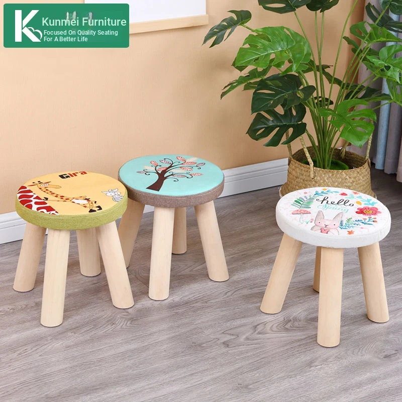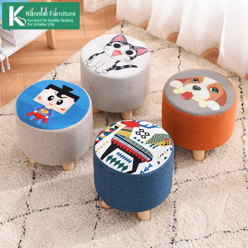 "Cozy Home Entryway Stool - Stylish Fabric Low Bench for Shoe Changing, Solid Wood Round Seat, Trendy Children's Creative Chair, Cute and Functional Design for Living Room"