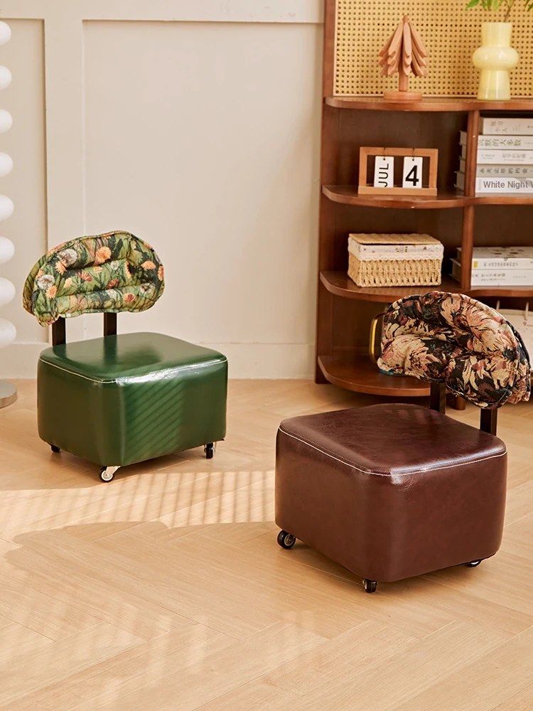 Versatile Home Mini Stool with Swivel Wheels - Stylish Upholstered Seat for Living Room, Perfect for Kids and Ideal as a Shoe-Change Bench at the Entrance.