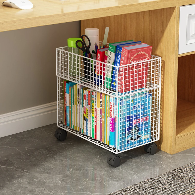 Rolling Book Storage Rack with Wheels - Moveable Under Desk Cart for Students, Stylish Iron Book Organizer with Baskets for Easy Storage and Access. Perfect for Homes and Classrooms!