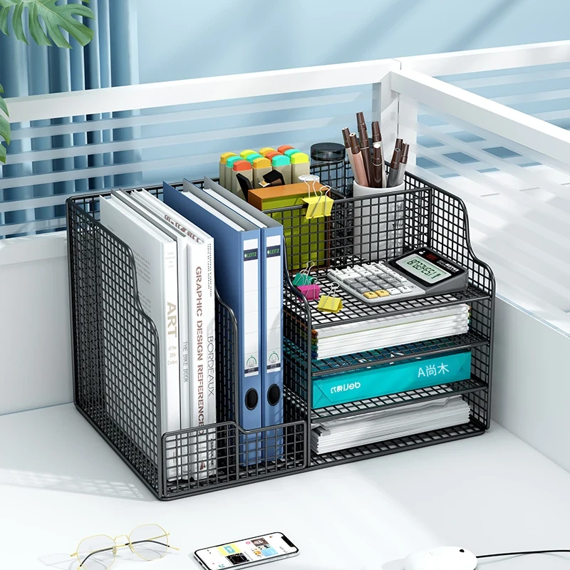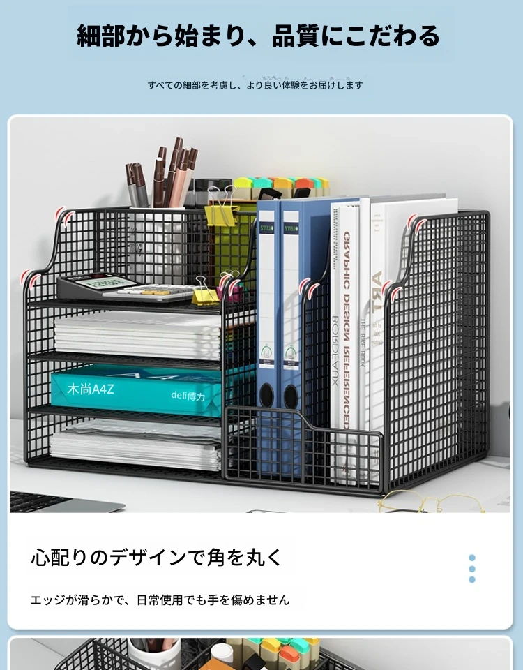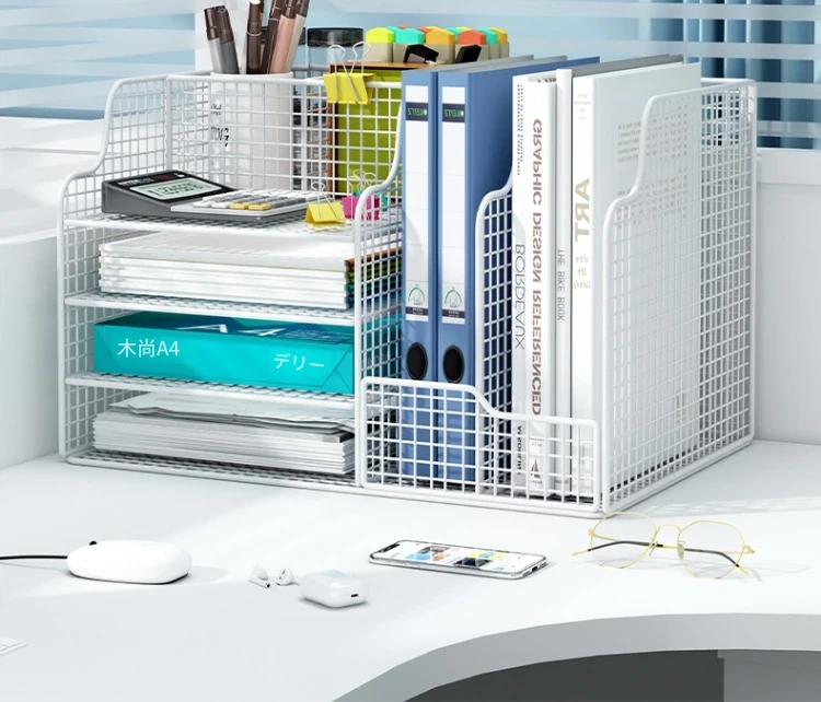A4ファイルスタンドデスク用縦型ブックシェルフ|オフィス整理に最適!書類や資料をスッキリ収納できる便利な収納ラックで、デスク周りを美しく整えましょう!