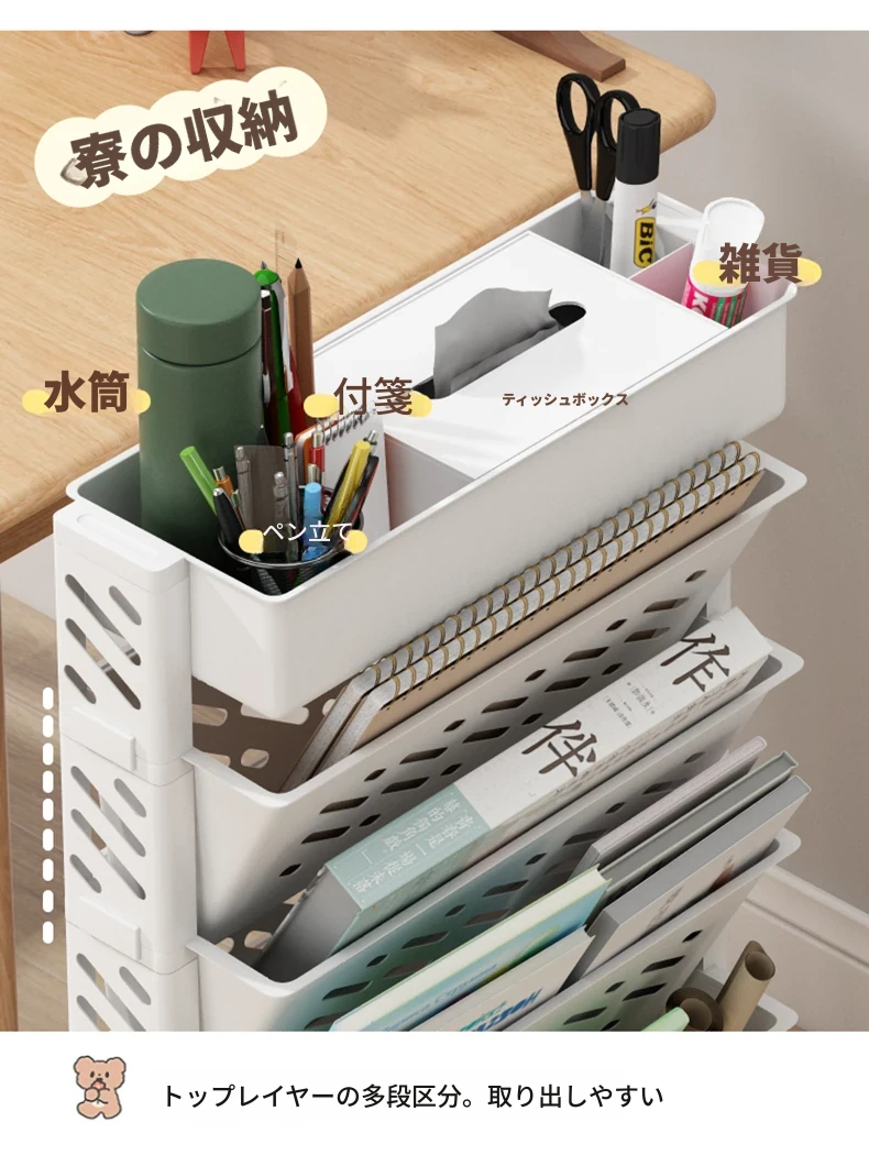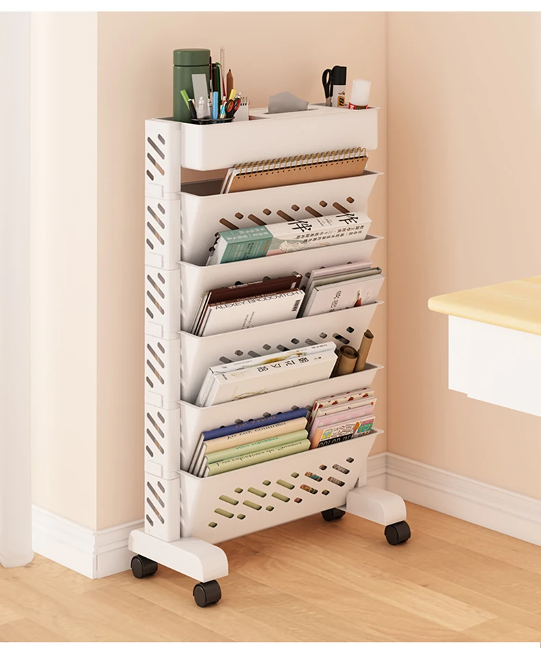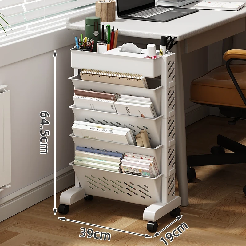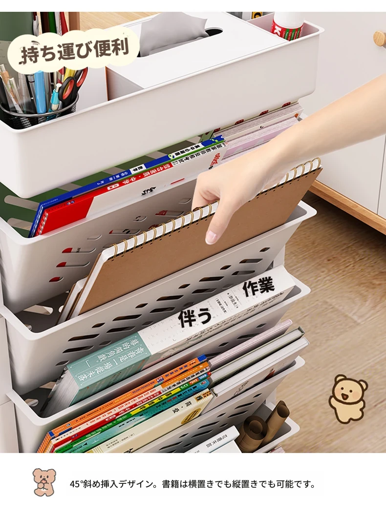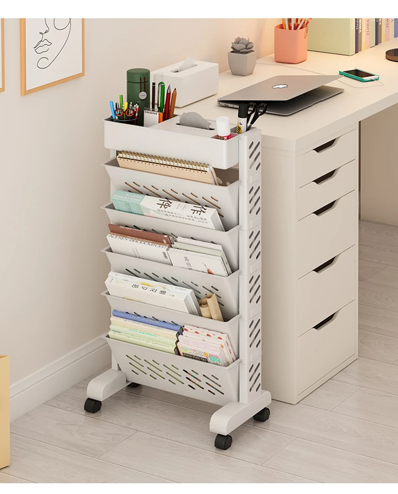 キャスター付き移動式デスクサイド本棚 - 学習空間をスマートに整理!教科書やノートをすっきり収納できる、便利なデザインの書架。高校生にぴったりのアイテム!