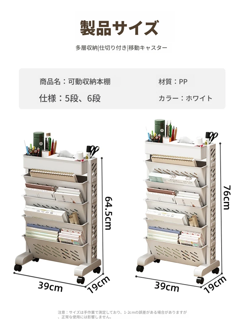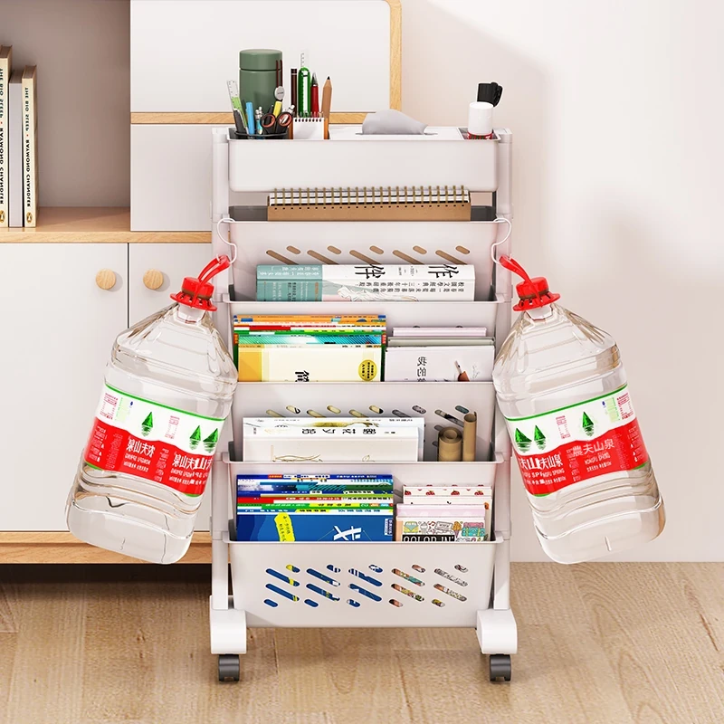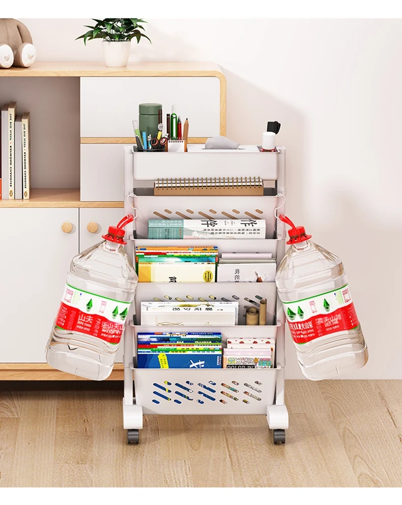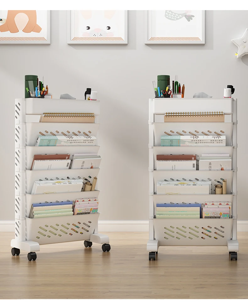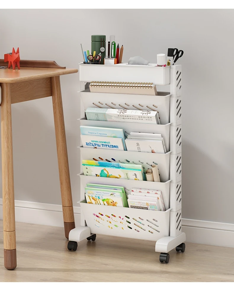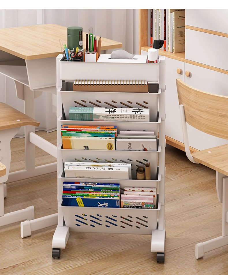 キャスター付き移動式デスクサイド本棚 - 学習空間をスマートに整理!教科書やノートをすっきり収納できる、便利なデザインの書架。高校生にぴったりのアイテム!