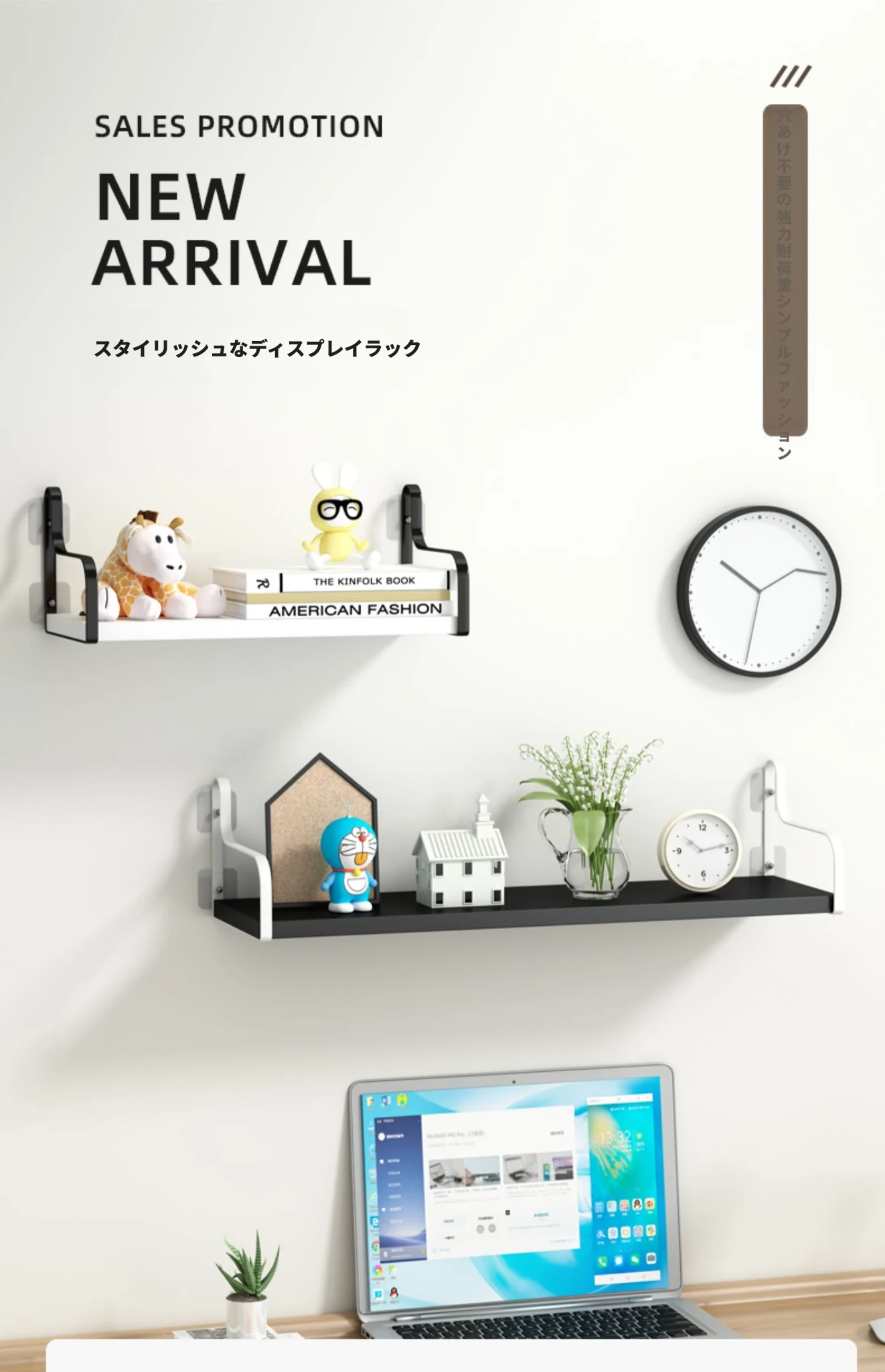 穴あけ不要!壁掛け収納ラック - 寝室やバスルームに最適なスタイリッシュな棚。スッキリ整理整頓、空間を有効活用!あなたのライフスタイルをグレードアップする必需品!