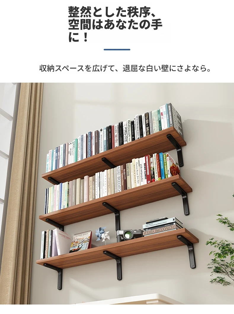 壁掛け棚 書籍用壁面収納ラック おしゃれなデザインでお部屋をスッキリ整理!空間を有効活用できる木製シェルフ 壁面にぴったりフィットするスタイリッシュな一字型シェルフ!