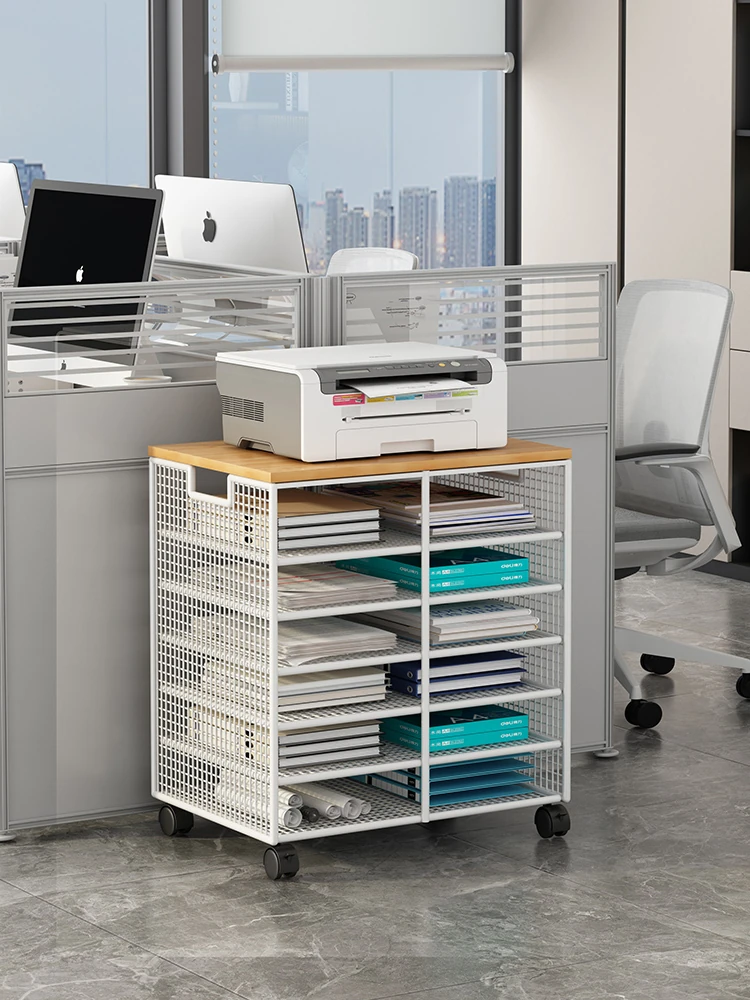 実用的なプリンター置き棚!移動可能なファイル収納ラック、天然木製のオフィスデスク下収納キャビネット。地面に置ける便利な整理棚で、オフィスをスッキリ整頓!