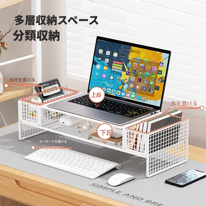 ノートパソコン用昇降スタンド - デスクトップモニター冷却&整理整頓に最適なオフィス用収納ラック!作業効率をアップし、快適な作業環境を実現します!