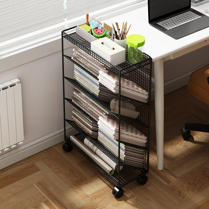 移動式キャスター付きブックシェルフ!デスク下の収納スペースに最適な小型ラック。本や文房具をスッキリ整理できる、スタイリッシュなデザイン。学習環境を整えるおしゃれな収納ボックス!